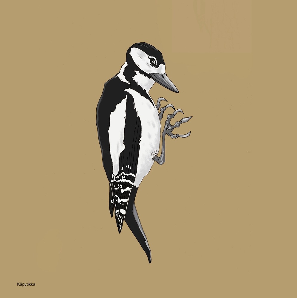 Käpytikka (60 cm x 60 cm, vaahtera ja jalava)